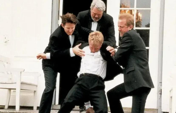 洛根选择汤姆、格雷格和卡尔作为「野猪」,强迫他们在地上爬行、发出猪叫声,并争抢扔在地上的香肠。这一过程的每一个细节,都经过了精心的设计,以最大化其羞辱效果。